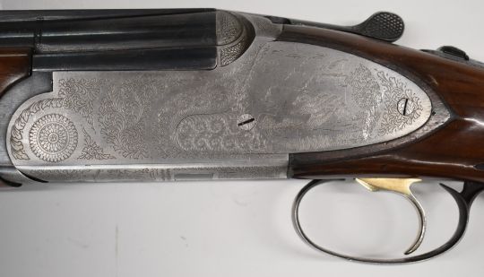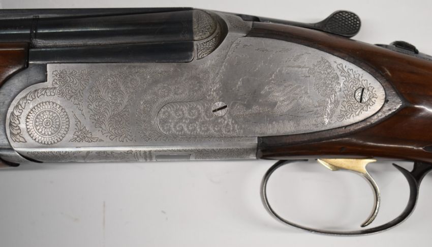 Rizzini 12 bore over and under ejector shotgun with engraved sidelock plates, trigger guard, underside, top plate and thumb lever, chequered semi-pistol grip and forend, single trigger, vented top and central ribs and 27 inch multi choke barrels, overall length 113.5cm, length of pull 36cm, serial number 50461.PLEASE NOTE THAT A VALID RELEVANT FIREARMS/SHOTGUN CERTIFICATE IS REQUIRED TO HANDLE/PURCHASE THIS ITEM.