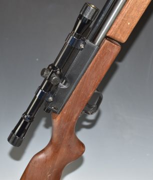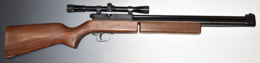 Sharp Inova .22 air rifle with semi-pistol grip, sound moderator and scope A363152, in original box.