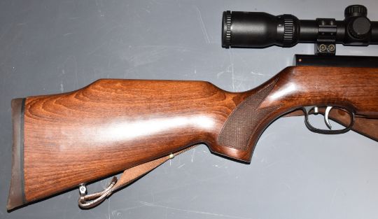 Weihrauch HW80K .22 air rifle with chequered semi-pistol grip, raised cheek piece, adjustable trigger and sights and Hawke Sport HD 3-9x40 scope, serial number 1370441.