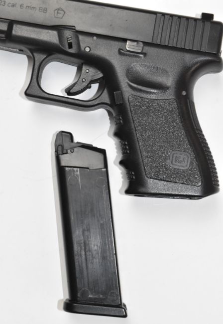 Umarex G23 6mm airsoft pistol with shaped and textured grips, serial number KJ0289.