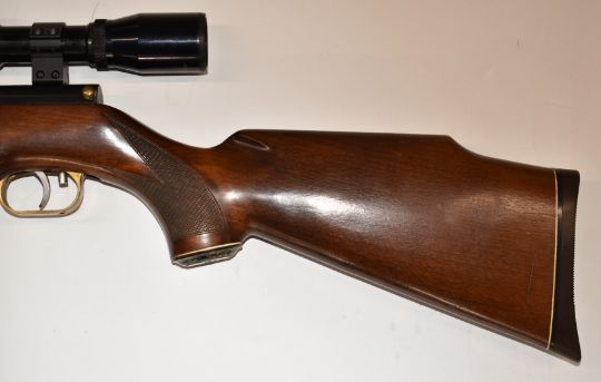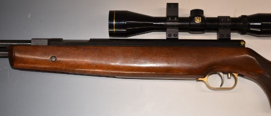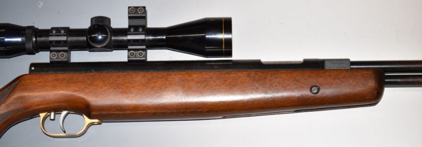 Weihrauch HW77 .22 underlever air rifle with chequered semi-pistol grip, adjustable trigger, raised cheek piece and Nikko Stirling Gold Crown 6x40 Wide Angle scope, serial number 1005204.
