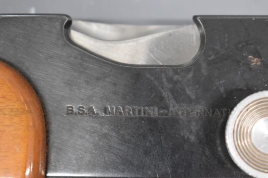 BSA Martini International .22 underlever-action target rifle with shaped grip, raised cheek piece and 28 inch barrel, overall length 105cm, serial number FG2057. PLEASE NOTE THAT A VALID RELEVANT FIREARMS/SHOTGUN CERTIFICATE IS REQUIRED TO HANDLE/PURCHASE THIS ITEM.