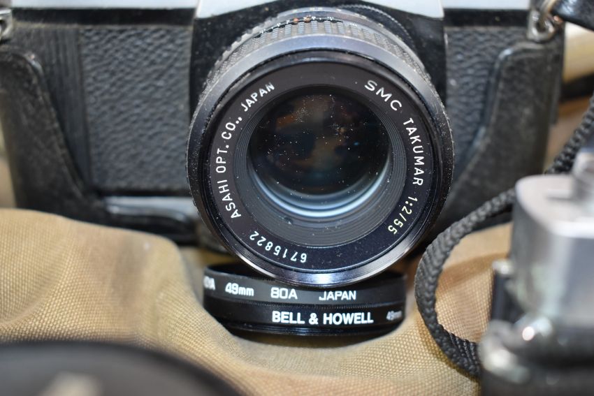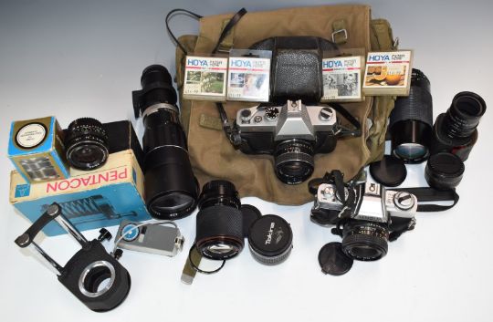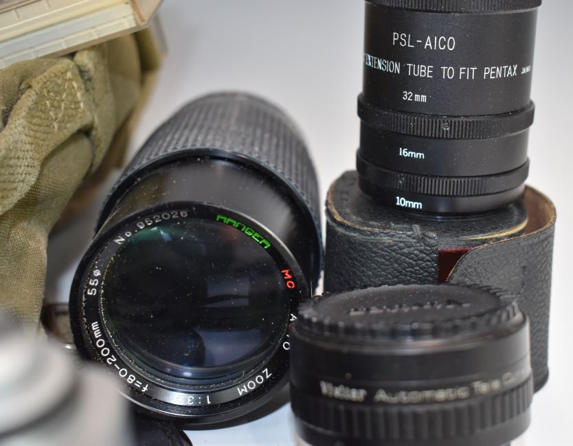 Minolta XGI 35cc SLR camera with 50mm 1:2 Minolta and 70-210m 1:4-5.6 Tokina lenses together with a Mamiya MSX 500 SLR with Tokinmar 1:2/55 lens and 800-200mm 1:3.9 and Soligor 350mm 1:5.6 lenses, filters etc