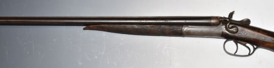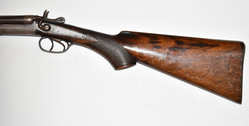 Belgian .410 side by side hammer action shotgun with line engraved locks, trigger guard and action, chequered semi-pistol grip and forend, double trigger and 30 inch barrels, overall length 116.5cm, serial number 1081.  PLEASE NOTE THAT A VALID RELEVANT FIREARMS/SHOTGUN CERTIFICATE IS REQUIRED TO HANDLE/PURCHASE THIS ITEM.