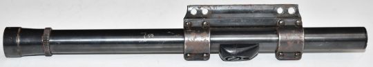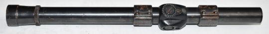 Weaver B4 military type rifle scope stamped 'Weaver B4 El Paso Tex USA Pat'd' with scope mounts, 29cm long.