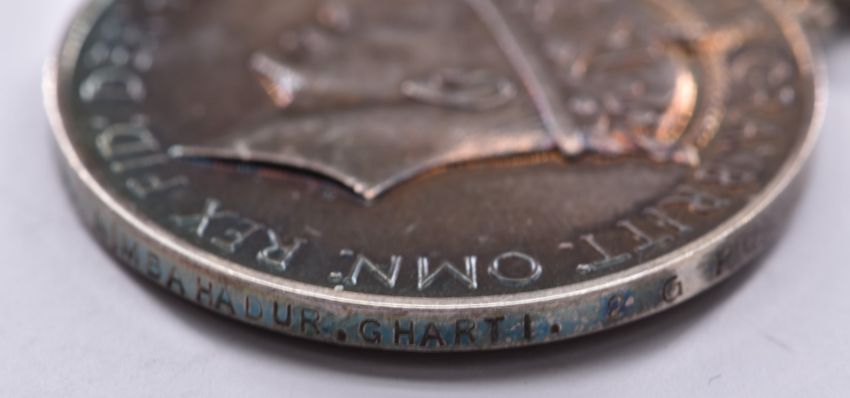 British Army General Service Medal with clasp for Malaya named to 21143679 Rifleman Nimbahdur Gharti, 2 Gurkha Rifles