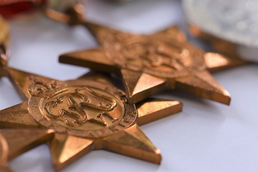 British Army WW2 medals comprising 1939-1945 Star, Africa Star with clasp for 1st Army, Italy Star, Defence and War medals
