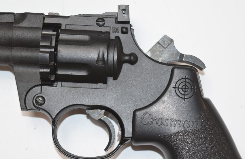 Crosman 357 .177 CO2 air pistol/ revolver with named and textured grips, three 10-shot magazines and 5.75 inch barrel, overall length 32.5cm, serial number 30930671.