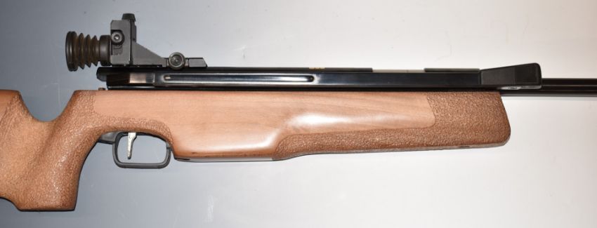 Gamo ASI MC Super Match .177 sidelever target air rifle with textured semi-pistol grip, raised cheek-piece and adjustable peep-hole target sights and trigger, serial number 1037985.