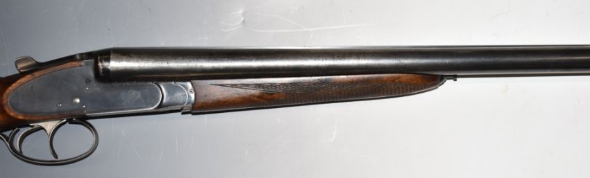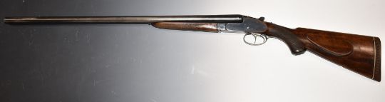 Czechoslovakian 12 bore side by side sidelock ejector shotgun with chequered semi-pistol grip and forend, raised cheek-piece to the stock, double trigger and 28.5 inch barrels choked ¾ and ½, overall length 115.5cm, length of pull 38cm, serial number 71209. PLEASE NOTE THAT A VALID RELEVANT FIREARMS/SHOTGUN CERTIFICATE IS REQUIRED TO HANDLE/PURCHASE THIS ITEM.