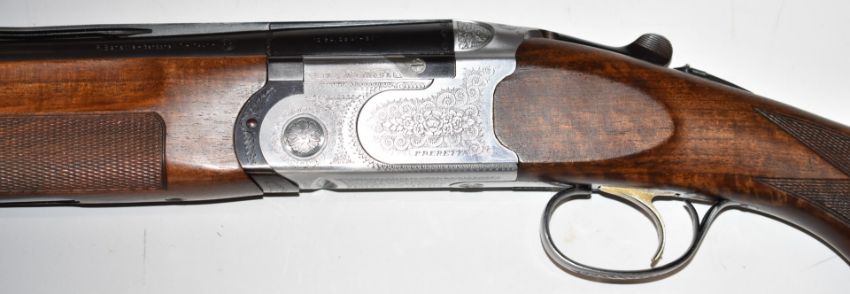 Beretta S686 Special 12 bore over and under ejector shotgun with all over scrolling engraving, chequered semi-pistol grip and forend, single trigger, vented top and central ribs and 29.5 inch multi-choke barrels, overall length 119.5cm, length of pull 36.5cm, serial number F02650B. PLEASE NOTE THAT A VALID RELEVANT FIREARMS/SHOTGUN CERTIFICATE IS REQUIRED TO HANDLE/PURCHASE THIS ITEM.