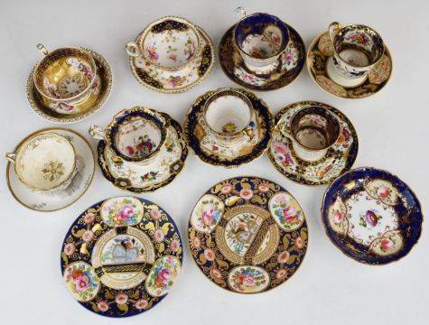 Collection of 19thC tea ware including Coalport, Spode, Hilditch, Daniels etc