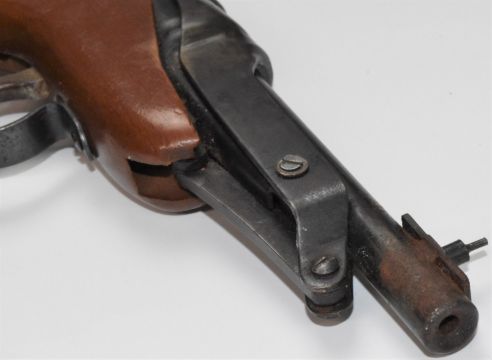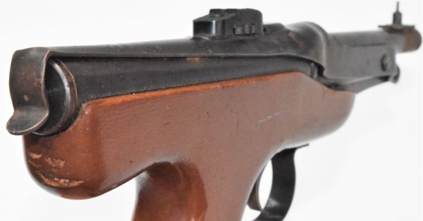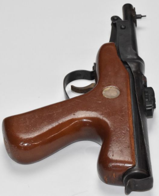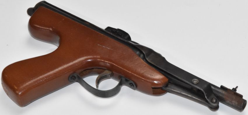 Diana 64 Mark IV .177 air pistol with shaped wooden coin inset grip and adjustable sights, NVSN.