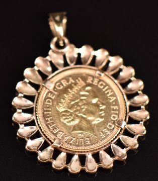 Elizabeth II 2000 gold half sovereign in 9ct gold pendant mount, 6.5g