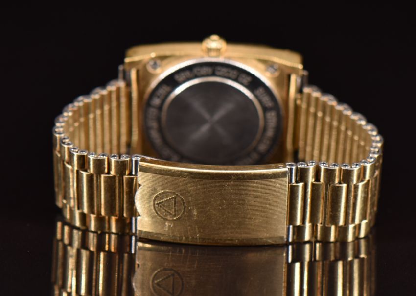 Zenith Port Royal gentleman's wristwatch ref. 00.0020 with date aperture, gold hands, two-tone baton hour markers, silver dial, gold plated case and quartz movement, case diameter 32mm.