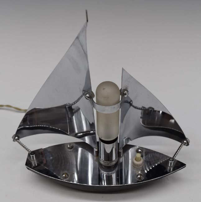 Art Deco style chrome table lamp formed as a sailing ship, length 23cm