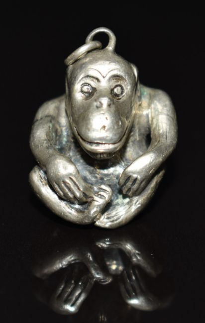 An 800 silver monkey pendant/ charm and six hallmarked silver buttons, Birmingham 1898