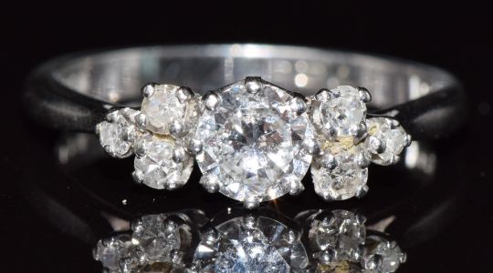 A platinum ring set with a diamond of approximately 0.57ct and further diamonds to shoulders, total diamond weight approximately 0.72ct, 4.5g, size N
