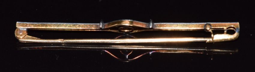 An 18ct gold brooch set with a diamond with a platinum finish, 3.9g, 5.8cm