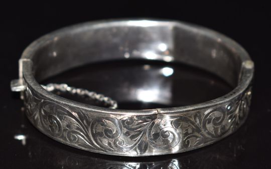 Victorian yellow metal scarf clip set with a ruby, 9ct gold locket, silver bangle, silver pen, coins and Golly badge