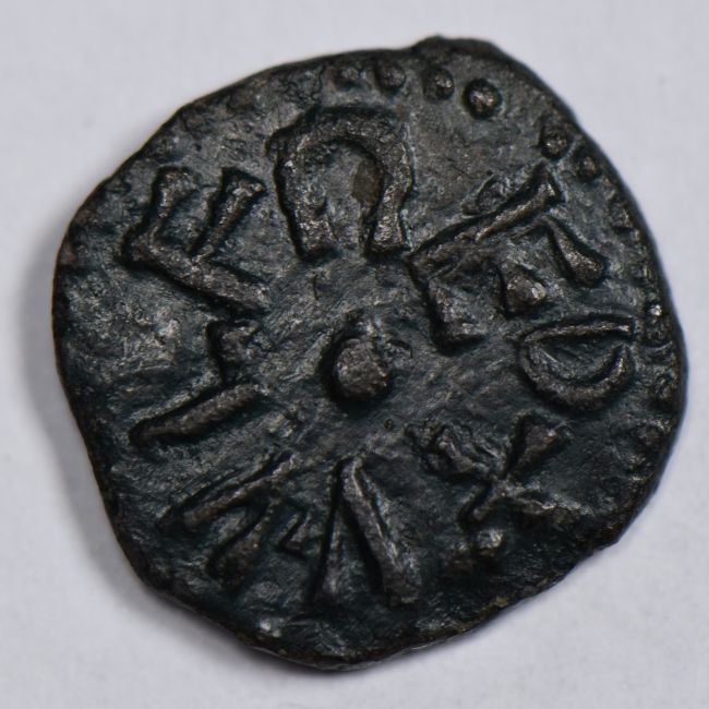 Saxon Aethelred 885-890, Northumberland bronze styra moneyer Wulfred, VF