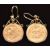A pair of 9ct gold earrings set with 1915 and 1913 gold half sovereigns, 9.7g