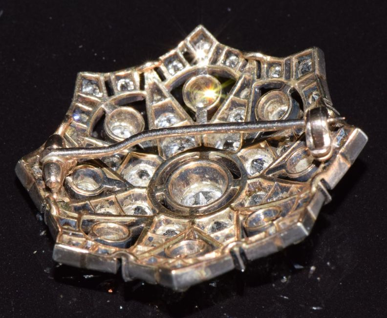 Late Victorian brooch in the form of a star set with old cut diamonds, the largest approximately 0.4ct, 8g, 3cm
