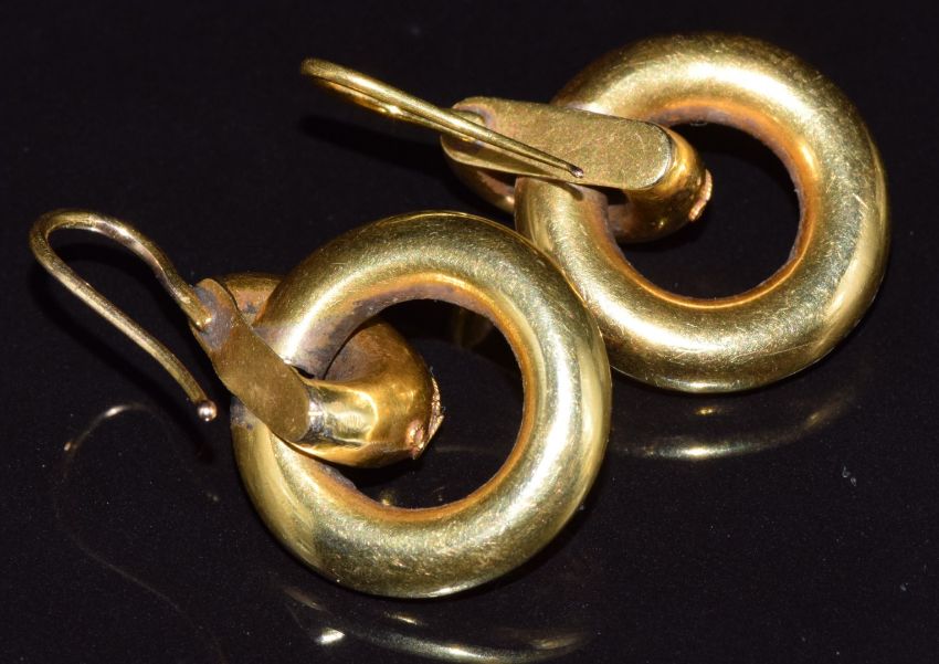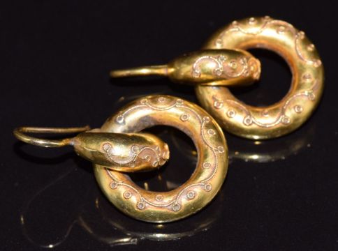 A pair of Victorian Etruscan Revival gold earrings with wire work decoration, 4.3g, 2.2cm