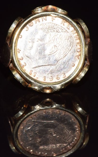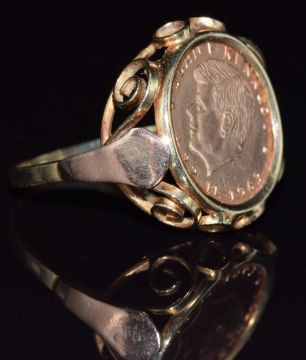 An 18ct gold ring set with a 1/10 dollar, 3.9g, size O