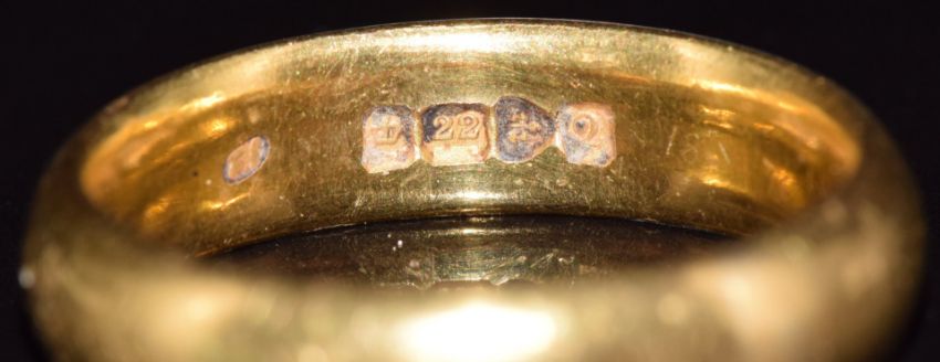 A 22ct gold wedding band / ring, Chester 1916, 9.4g, size S