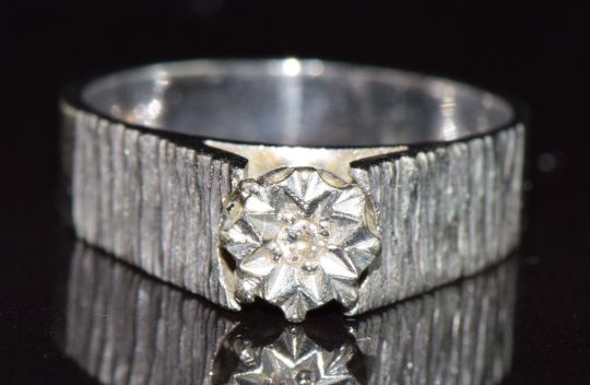 A 9ct white gold ring set with a diamond in an illusion setting, 3.2g, size J