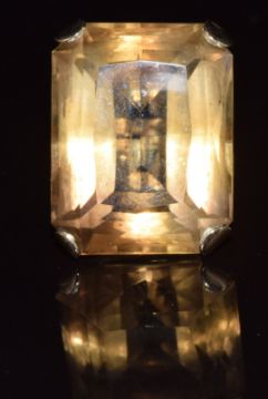 A 9ct gold ring set with a large emerald cut quartz, 14.7g, size N