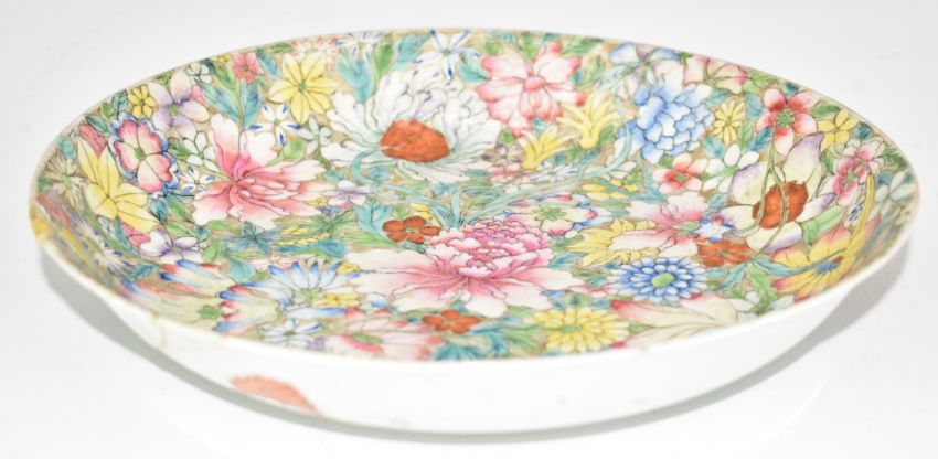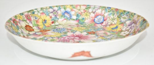 Chinese late 19th/ early 20thC millefiori bowl with four character Quianlong mark to base, 23.8cm in diameter.