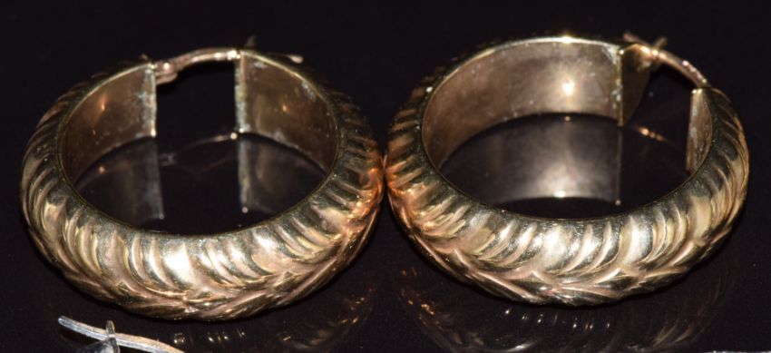 Three pairs of 9ct gold hoop earrings and seven single 9ct gold earrings, 16.3g