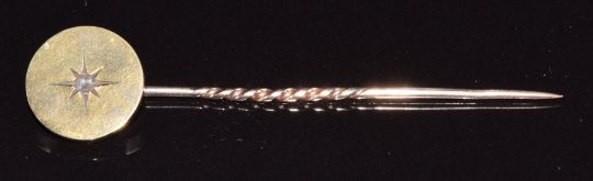 Victorian stick pin set with a diamond in a star setting, 2.5g, 6.4g, 6.5cm
