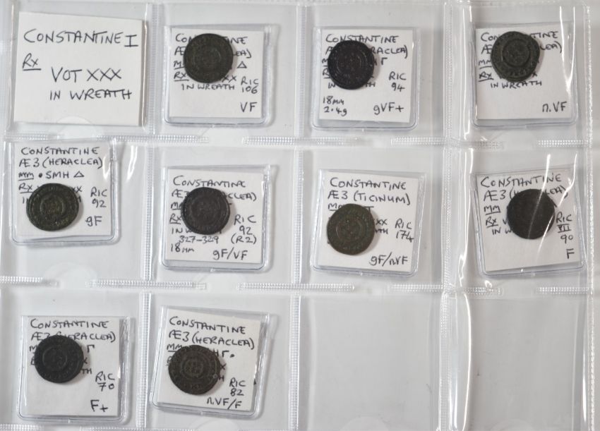 Roman Imperial, Constantine, various AE3 / 4 coins, Victory, two soldiers with on standard and VOT xxx wreath reverses, x 24 coins