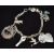 A silver charm bracelet with nine silver charms including spaniel, heart shaped pendant set with enamel depicting a ship on rough water reading 'telle est la vie' translating to 'such is life' and a perfume bottle
