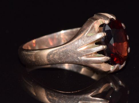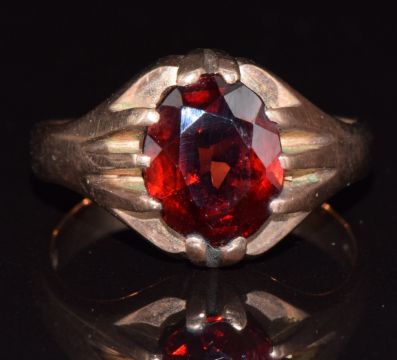 A 9ct gold ring set with an oval cut garnet, 5.2g, size R