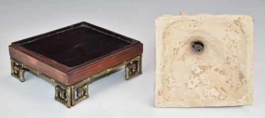 Chinese pottery figure of a dancer, on wooden stand, height 26cm