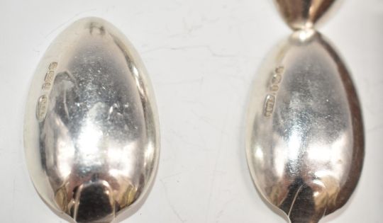 Hallmarked silver cutlery to include cased set of six teaspoons, Georgian sugar nips and a small fork, weight 307g