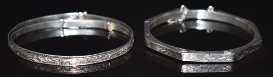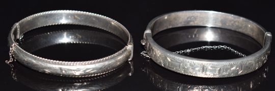 Six silver bangles with engraved foliate decoration, one an octagonal example