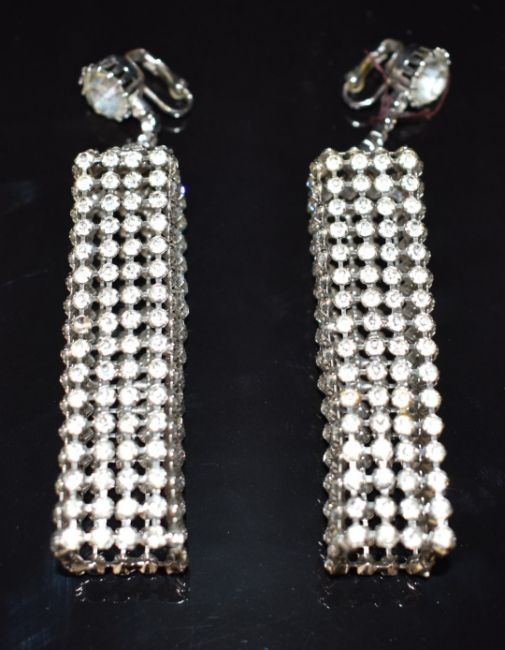 A pair of paste/diamanté earrings, large diamanté choker necklace and another diamanté necklace