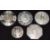 Four Peruvian silver brooches and a Peruana silver coin converted to a brooch