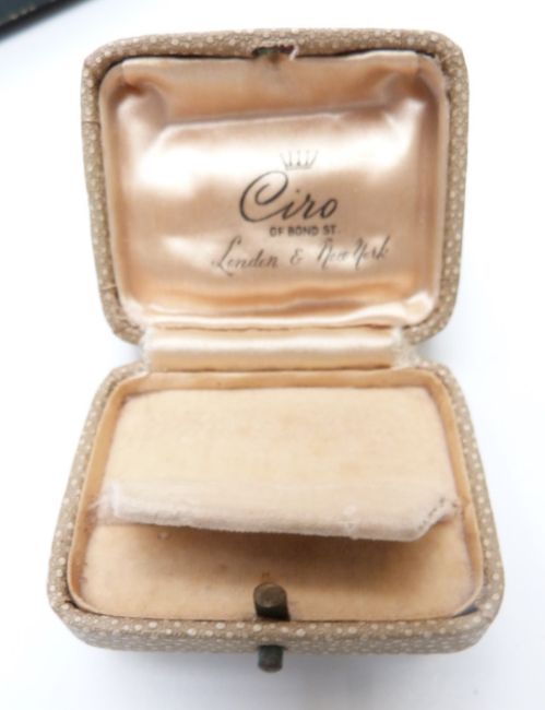 A collection of vintage jewellery boxes including 'Goldsmiths & Silversmiths Company', 'Parsons, Bristol', Ciro, 'Mikimoto', etc