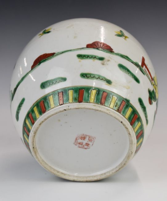 Late 19th/20thC Chinese ginger jar with enamelled figural decoration and mark to base, height 16cm