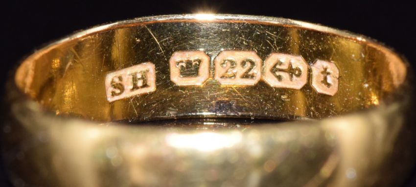 A 22ct gold wedding band / ring, Birmingham 1918, 3.6g, size K