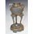 Chinese bronze twin handled censer raised on three stylised figural legs and with cast decoration, height 23cm