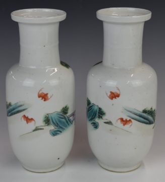 Pair of late 19th or early 20thC Chinese vases decorated with ladies in a traditional setting with deer, height 23.5cm