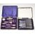 Cased hallmarked silver mounted manicure set, width of case 21.5cm, together with a cased set of hallmarked silver handled knives
