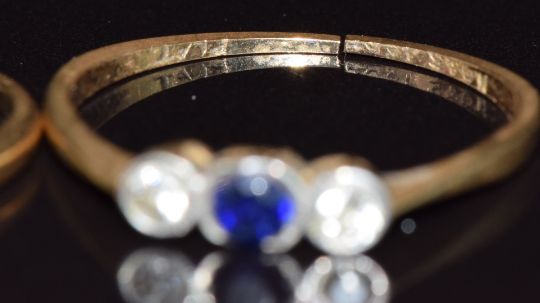 Two 18ct gold rings set with diamonds and sapphires 4.7g, size Q/R